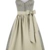 Dirndl ANNIE (90 cm) langes Dirndl in SalbeitönenMieder aus feinem Jacquard mit Blumen-Streumusteredle Samtborten am eckigen Ausschnittschimmernde Webschürze mit Streifenmusterweich fließender, einfarbiger Rockvon führenden Dirndl-Herstellern exklusiv für MOSER gefertigt