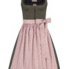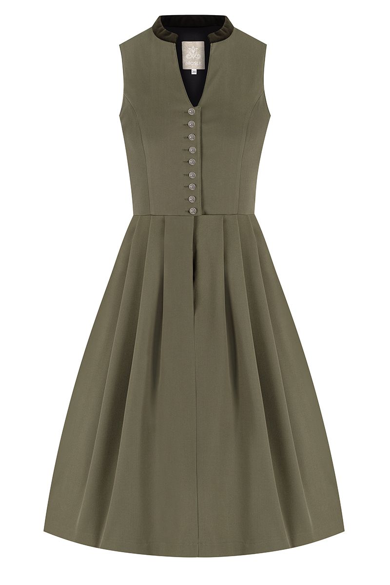 MOSER Midi Dirndl 65 cm Gastro oliv Stretch Viona hochgeschlossenes Gastronomie-Dirndlbequemer Webstoff mit Stretch-Anteileleganter Samtkragenaltsilberne Trachtenknöpfe mit Rosenmustermit Dirndlschürzen in 65 cm Länge kombinierbar
