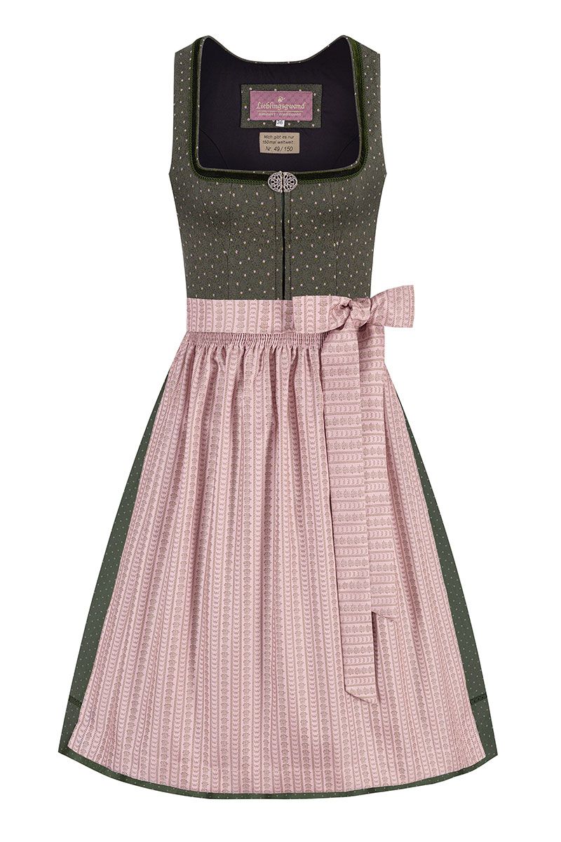 Lieblingsgwand Midi Dirndl 65 cm oliv altrosa Marlen – limitiert Mieder mit rosafarbenen Streublümchenverdeckter Reißverschluss vorn mit floraler Schließe in Altsilberelegante Samt- und Kordelbordüren am AusschnittBaumwollrock mit Pünktchenmusterrosafarbene Dirndlschürze mit filigranem Streifenmusterin limitierter Auflage von nur 150 Stück exklusiv bei MOSER erhältlich!aus europäischer Produktion