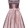 MOSER Mini Dirndl 55 cm dunkelblau weiß gemustert Leonie Mini Dirndl aus Baumwolle mit weißem Brokatmusterprächtig verzierter Ausschnitt mit Rüschen und Froschgoscherldunkelblaue MiederschnürungDirndlschürze mit Pünktchenmuster und aufwendigen Borten im Saumbereichblaues Schürzenband aus glänzendem Satin
