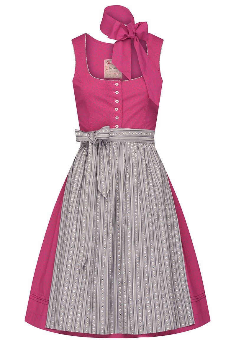 ​MOSER Mini Dirndl 60 cm beere grau inkl. Schal Clara Mini Dirndl in knalligem Beere-Ton mit floralem Musteraus 100 % Baumwolleabgerundeter Ausschnitt mit grau gemusterter Paspelinkl. farblich passendem Schal als trendiges Accessoire zum Dirndlgraue Schürze mit hübschem Retro-Muster in Weiß, Schwarz und Taupevon führenden Dirndl-Herstellern für MOSER gefertigt